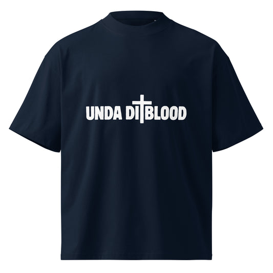 A CEO's Navy and White Print Unda Di Blood Unisex organic oversized high neck t-shirt